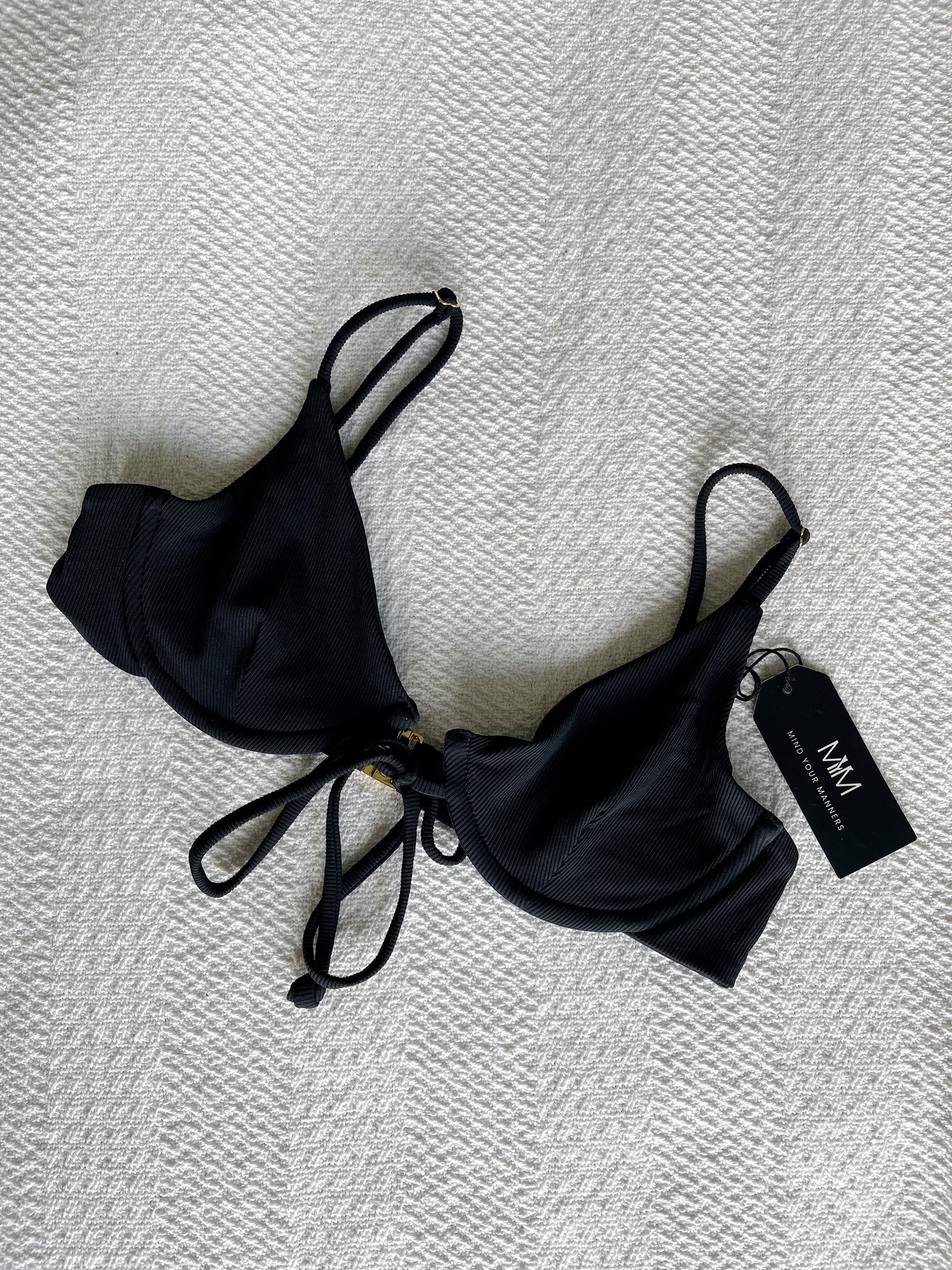 The softest, stretchiest material. Adjustable ribbed bra with wire for support.